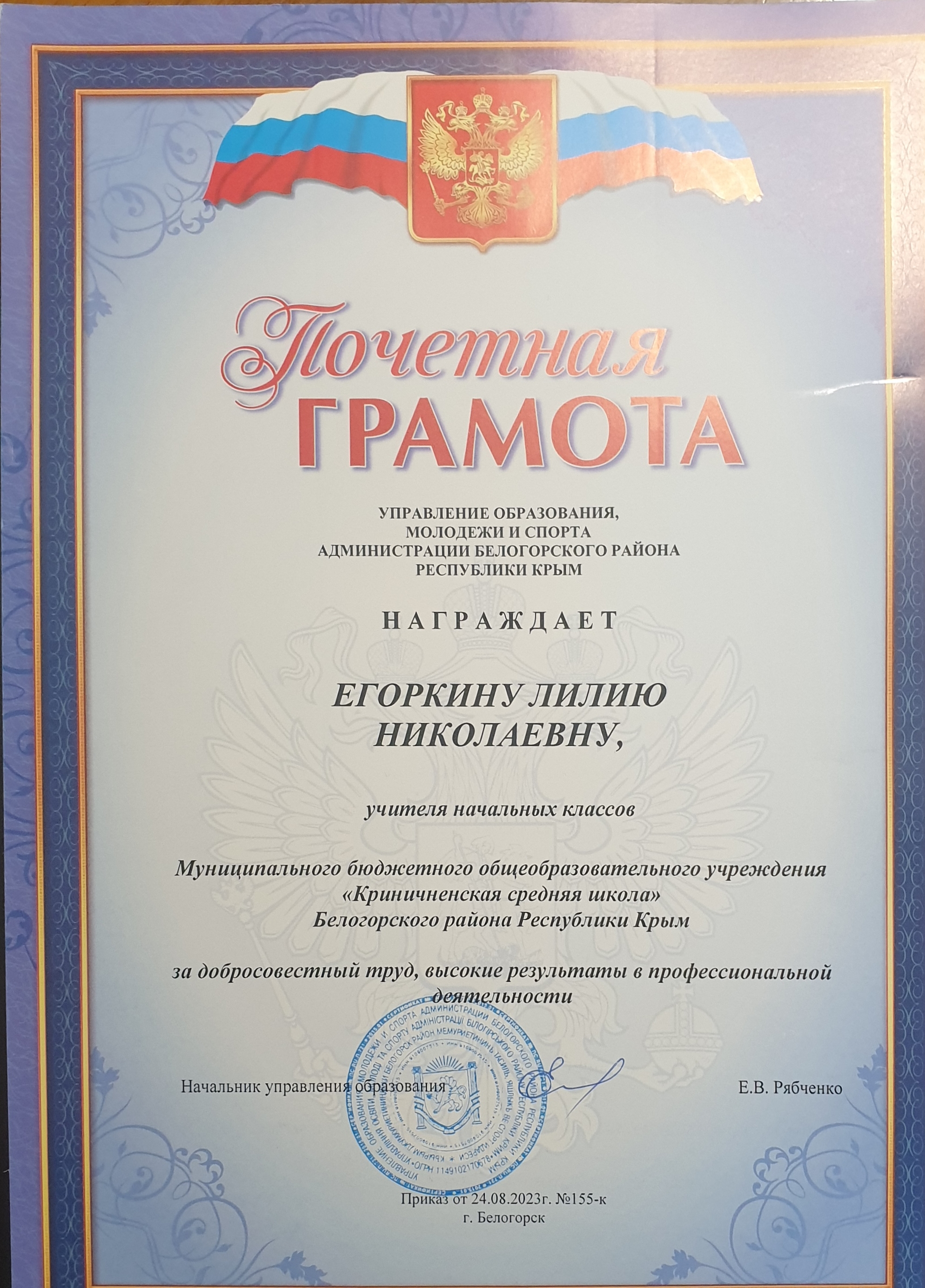 Муниципальное бюджетное общеобразовательное учреждение «Криничненская средняя школа» Белогорского района Республики Крым